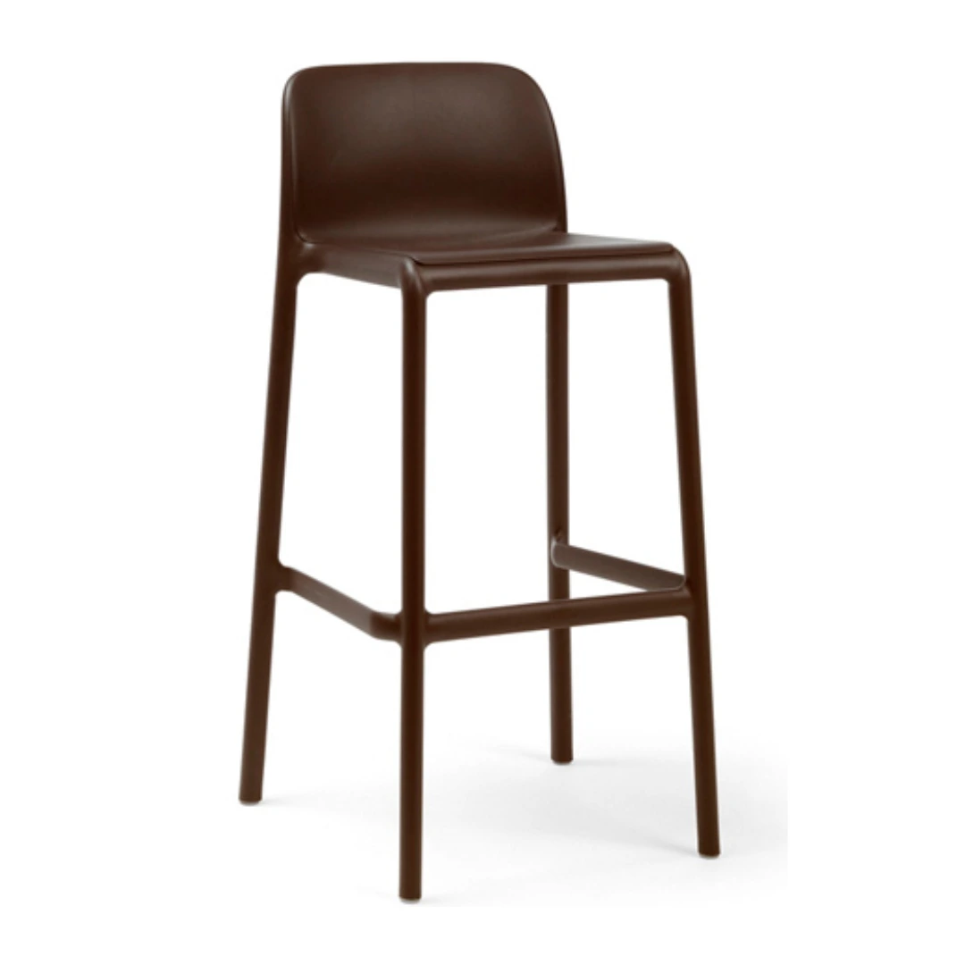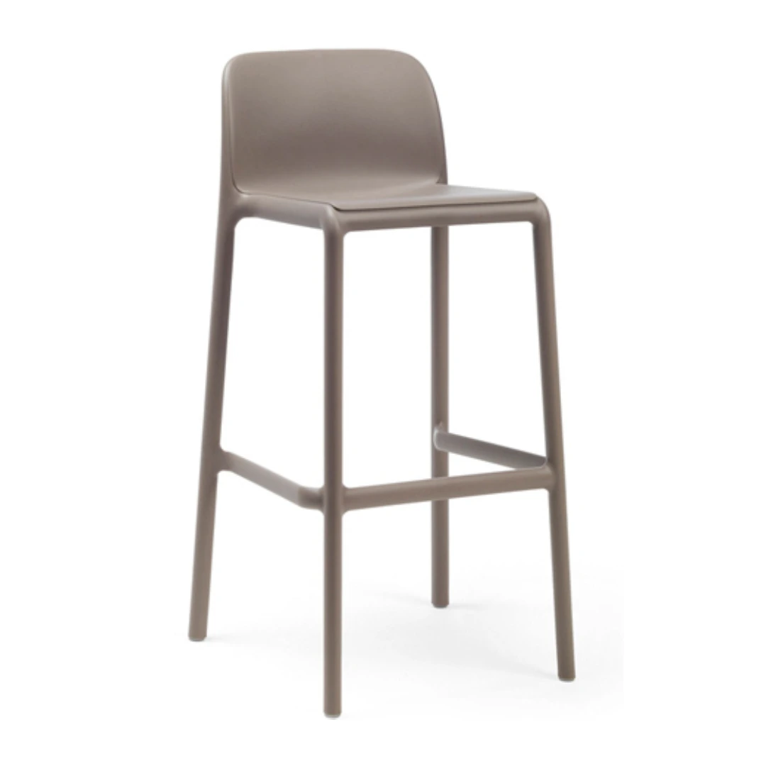 Necesarios en los espacios al aire libre de cafés, clubs y locales, los bancos Faro son asientos altos y cómodos en los que se asume una postura a medio camino entre el estar de pie y el estar sentados. Están fabricados de una sola pieza de resina de fibra de vidrio con líneas pulidas y esenciales, con una estructura tubular sin interrupciones y medidas generosas para permitir una silla ágil, cómoda, ligera, apilable y sin necesidad de un mantenimiento especial.