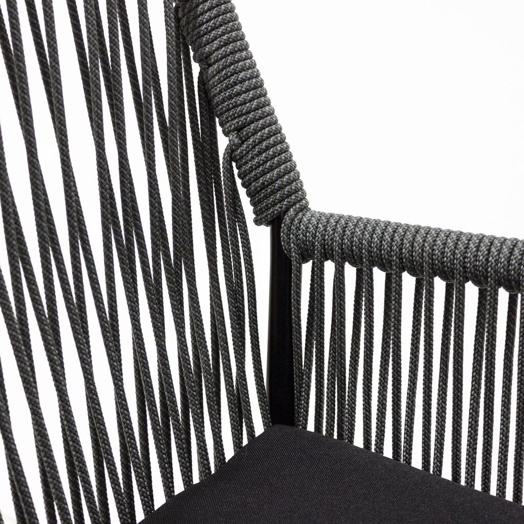Para uso en exterior techado, la silla Chapala es una de las piezas mas bellas de nuestra colección corazón de México, fabricada en estructura metálica pintada al horno y tejida con cordón de multifilamento de polipropileno de 6mm con cojín.