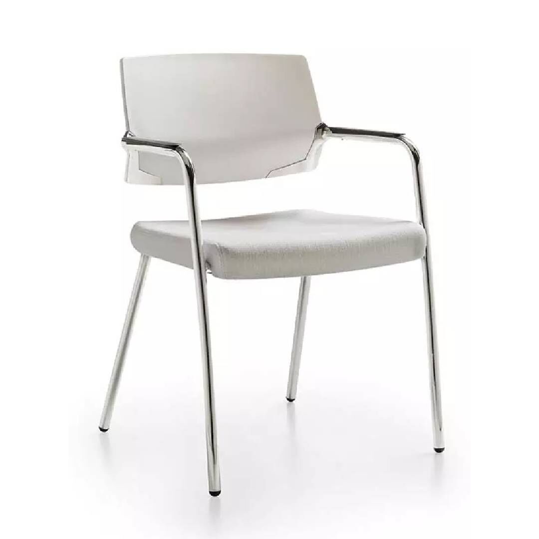 Silla de visita de la familia cool. Cuenta con diseño ergonómico en su respaldo elaborado en polipropileno y asiento tapizado en tela. Su base es de acero tubular redondo cal. 13 de 4 puntos terminado en pintura electrostática o cromo.