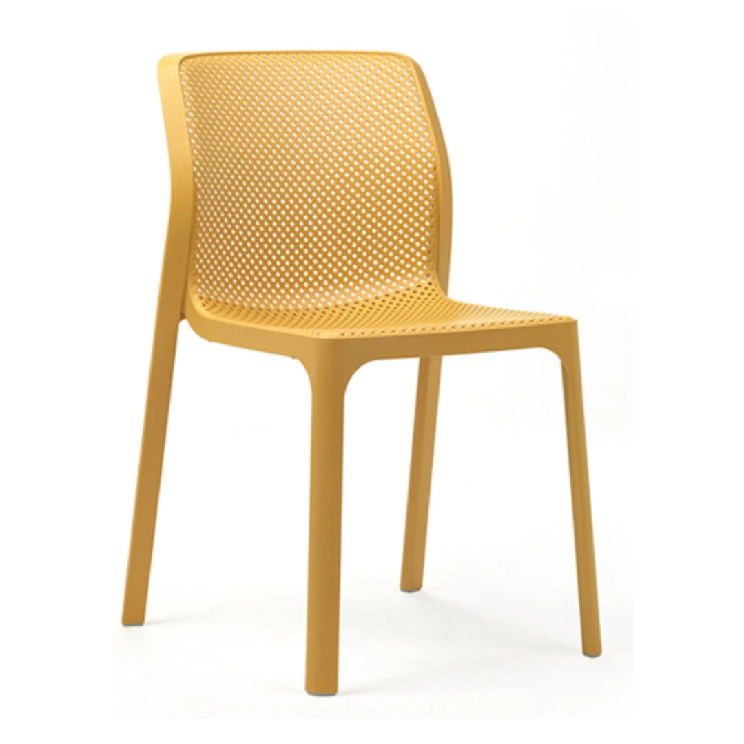 Silla monobloc apilable sin brazos, fabricada en resina pura de primera calidad con fibra de vidrio (polipropileno fiber-glass tratado anti UV y teñido en masa con efecto mate), dotada de tacos antideslizantes. Hecha 100% en Italia con certificado Eur1, recomendada para uso al aire libre, manteniendo sus propiedades con el pasar de los años.