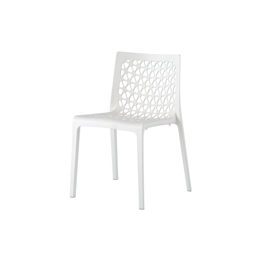 Milán es conocida por ser una capital del diseño. No es de extrañar por qué la silla Milan le da un toque moderno a una silla de moda. El divertido diseño calado proporciona luz y sombra. Las sillas Milan son livianas, apilables y coloridas, adecuadas tanto para uso en exteriores como en interiores. La silla está hecha de polipropileno duradero de alta calidad, lo que permite un fácil cuidado.