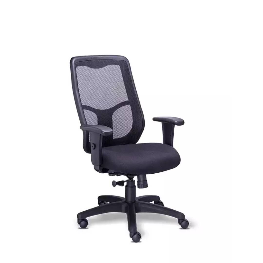 Sillón ejecutivo respaldo alto en mesh. Cuenta con un mecanismo de reclinamiento synchro y bloqueo con perilla para regular tensión. Su respaldo tiene un diseño ergonómico con ajuste de altura gradual, además de un asiento acojinado y moldeado. Descansabrazos con ajuste de altura con codera suave al tacto.
